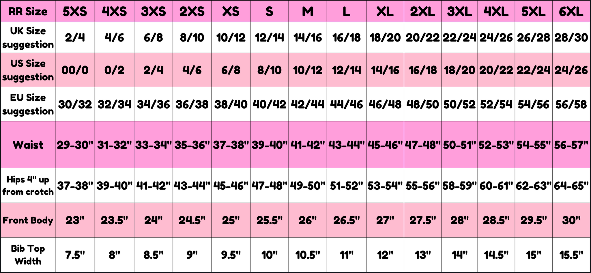 Suggested UK/US/EU sizes are a guide only - always check the actual measurements for the best fit!