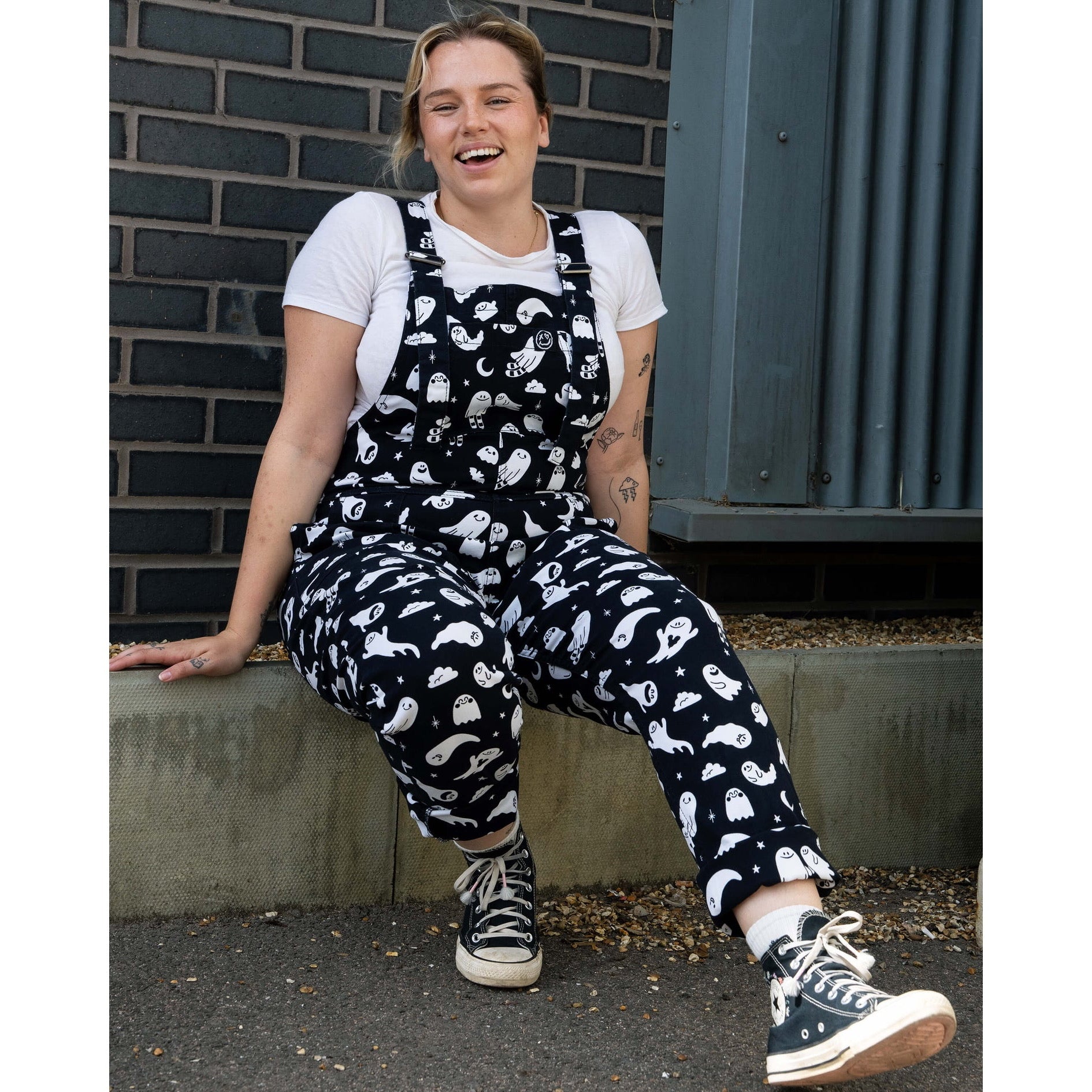 Say hello to the Ghosties Stretch Dungarees, a relaxed-fit unisex dream made from comfy stretch twill and ethically produced in India! Covered in a playful parade of black and white ghosts.